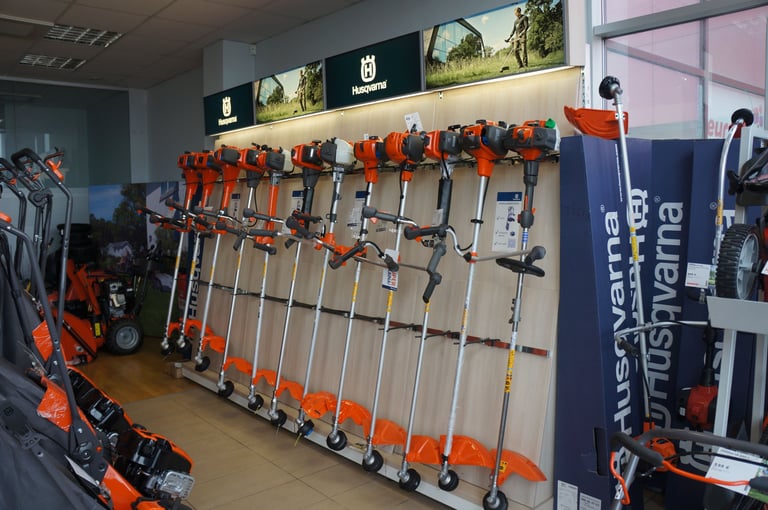 Prekiniai ženklai. Mūsų parduotuvėse galite rasti įvairių prekinių ženklų, kurie atitiks jūsų poreikius: Husqvarna, McCULLOCH, Gardena, Jonsered, Klippo, Partner, Kipor, Briggs and Stratton, Honda, Hitachi ir kt.