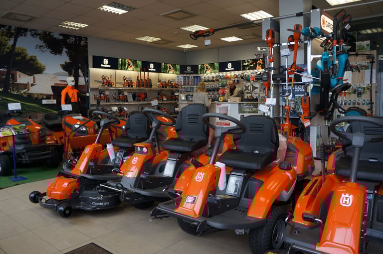 Paslaugos. Padedame išsirinkti bei parduodame įvairią sodo techniką (robotai vėjapjovės, sodo traktoriukai, pjūklai ir kt.).